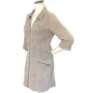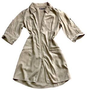 INC International Concepts M Full Zip Shirt Dress Zip Pockets Khaki Beige 128L