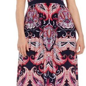 INC International Concepts Maxi Dress M Paisley Pleated Band Neck Halter Regency