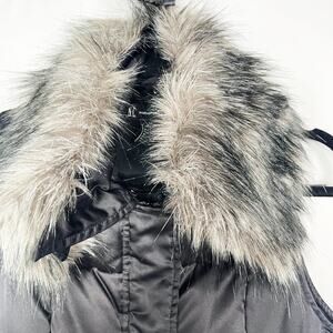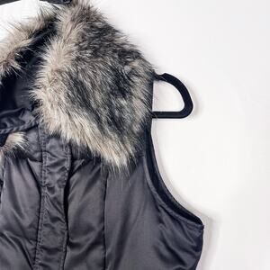 INC International Concepts Medium Black Full Zip Quilted Removable Faux Fur Vest