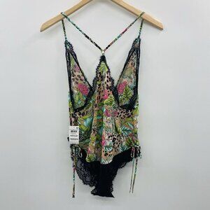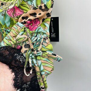 INC International Concepts Medium Lace Chiffon Floral Lingerie Bodysuit $49 2682