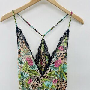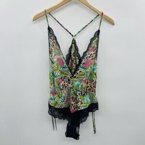 INC International Concepts Women's Lace Chiffon Floral Lingerie Bodysuit in Jungle Leopard