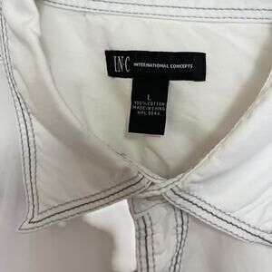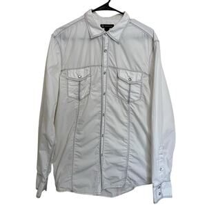 INC International Concepts | Men L White Button Up Shirt Pearl Snap Western Y2K