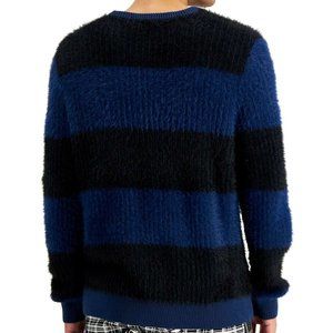 INC International Concepts Men's Timeless Navy Fuzzy Striped Sweater Large