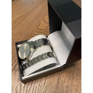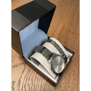INC International Concepts Men's Two-Tone Bracelet Watch Silver 46mm