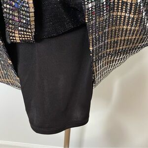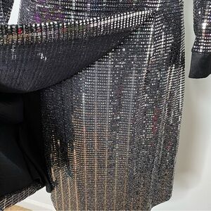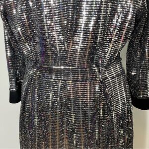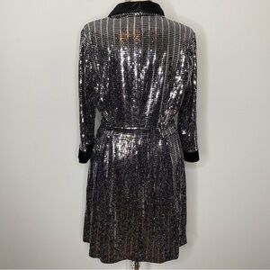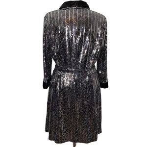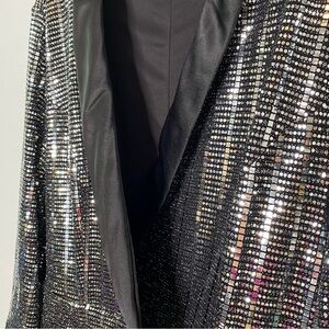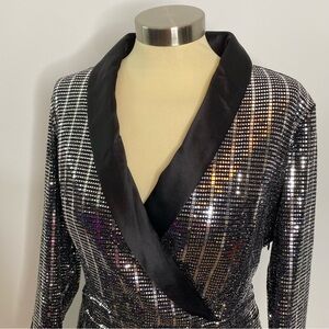 INC International Concepts Mirror Ball Blazer Dress. Made exclusively for Macy's. Shawl satin collar with surplice neckline, hidden zipper at side seam. Long blazer dress silhouette with 3/4 sleeves with black satin cuffs. Faux wrap skirt, dress is fully lined. New without tags, wore something else to the event I purchased this for. Stock photos included to show fit.