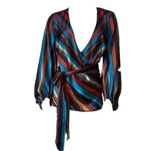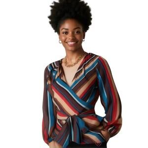 INC International Concepts Multi Color Striped Wrap Top Size XS NWT