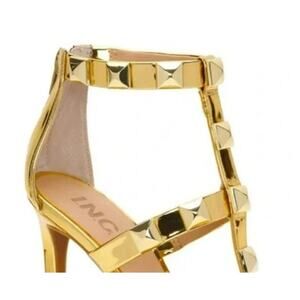 INC International Concept's Women’s Gold Syndia Pump with Strappy Studded Goring, Pointed Toe, Stiletto Heel, and Back Zip-Up. Size 6.5 M (medium)