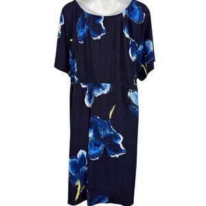 INC International Concepts Navy Floral Jersey Knit V-Neck Short Sleeve Dress 2X