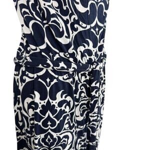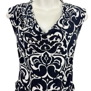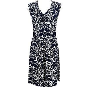 INC International Concepts Navy White Sleeveless Scoop Neck Jersey Knit Dress M
