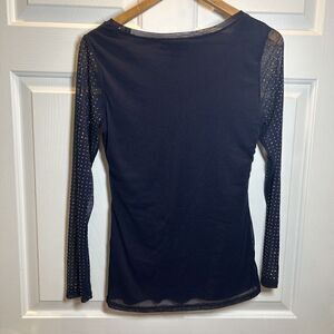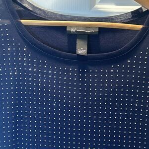 I.N.C. International Concepts Navy Blue Sheer Long Sleeve Studded Blouse; Excellent condition, very minimally worn. No flaws to note; Approximate measurements: chest: 17" length 25.5" sleeve 23"