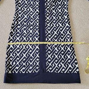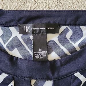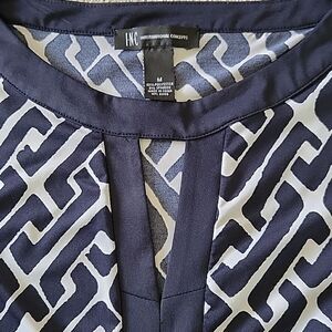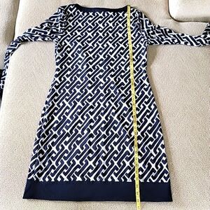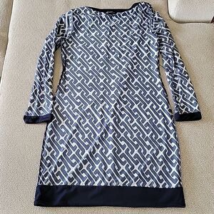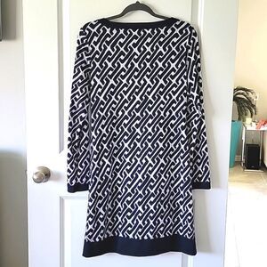 INC International Concepts Navy and White Geo Long Sleeve Stretch Dress - Medium