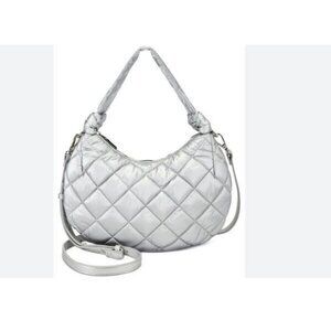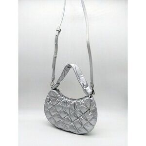 INC International Concepts Olivya quilted nylon small shoulder crossbody -SILVER
