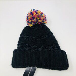 INC International Concepts Women's Chenille Striped Multi-Pom Beanie Hat in Black