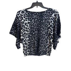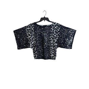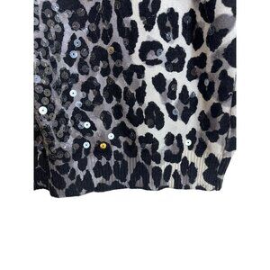 INC International Concepts PETITE Black White Gray Leopard Sequin Sparkly Shirt