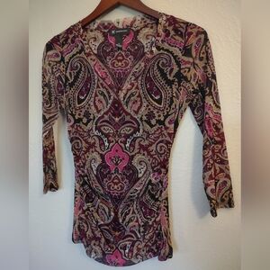 INC International Concepts Paisley Print Ruched V-Neck Size Small