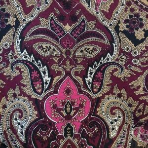 This stunning INC International Concepts women's top features a vibrant and intricate paisley print in shades of pink, burgundy, gold, and black. Designed with a flattering V-neckline and stylish 3/4 sleeves, it offers a chic and comfortable fit. The fully lined front and delicate ruching on the sides creates a flattering silhouette, making this top perfect for both casual and dressier occasions. Made from a comfortable and lightweight stretchy fabric, it's an versatile addition to any wardrobe. Pair it with jeans for a casual look or dress it up with slacks or a skirt for an evening out.