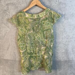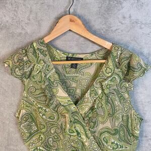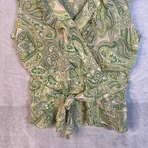 INC International Concepts Paisley Print Tie Front Silk Blouse Green Size 14P