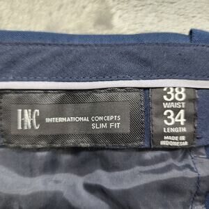 INC International Concepts Pants Mens 38X34 Blue Slim Fit Flat Front Office Preppy