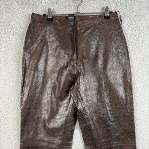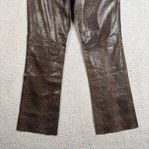 INC International Concepts Pants Women Size 6 Brown Flared 100% Leather Scales