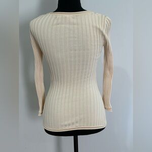 INC International Concepts Petite Cream Ribbed Long Sleeve Top 85%Silk 867