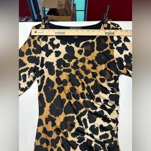INC International Concepts Petite Leopard Print Bodycon Ruched Dress M