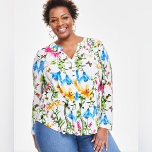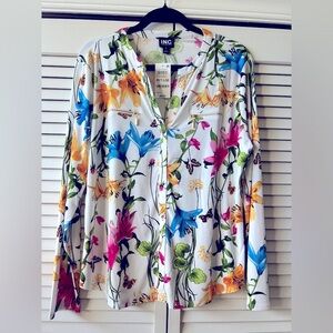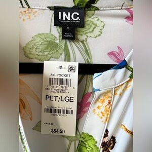 I.N.C. International Concepts (Macy’s) Petite Printed Zip-Pocket Floral Top - Size L