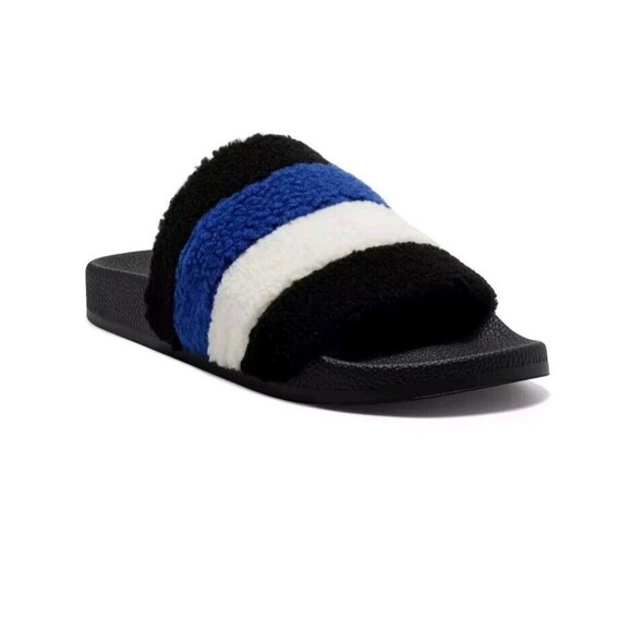 INC International Concepts Peymin Blue/Black Stripped Slide Sandals Women's 9M