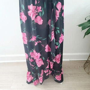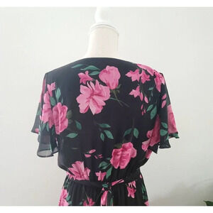 INC International Concepts Pink Black Floral Faux Wrap Midi Flutter Dress 10 M