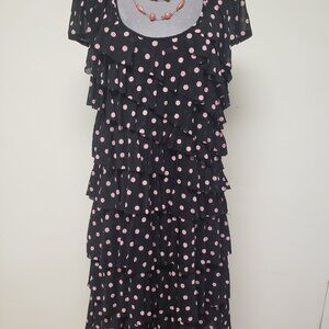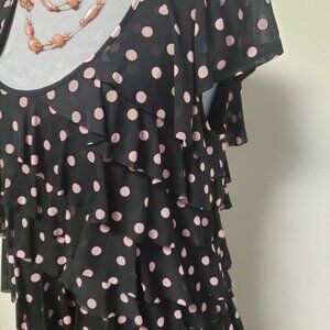 INC- International Concepts Pink Polka Dot Mesh Tiered Dress