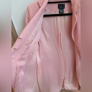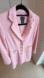Chic light pink blazer with textured fabric. Size 6. Features button closure and front pockets. Ideal for a polished look. Preloved condition. One button loose but easy fix.From shoulder to bottom approximately 34.5 inches.