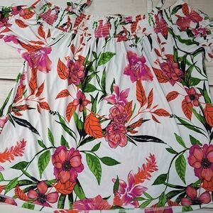 INC International Concepts Pink and White Floral Smocked Ruffled Blouse Size 2X