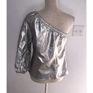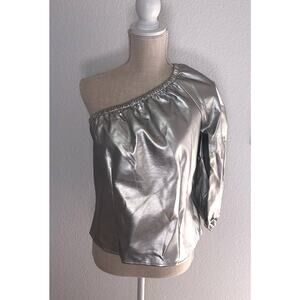 INC International Concepts Inc Pleather One-Shoulder Top Silver Metallic - Size S