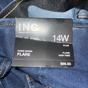 INC International Concepts Plus Size Pull On Flare Leg Jeans Cranberry Wash 14W