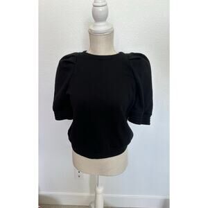 INC International Concepts Puff-Sleeve Crewneck Sweatshirt Black Top - S