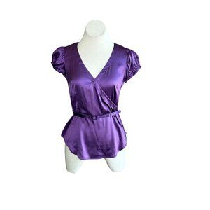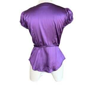INC International Concepts Purple Stretch Silk Puffy Sleeve Faux Wrap Blouse