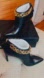 • Description: Black stiletto heel booties with a pointed toe and gold-tone chain detailing around the ankle.