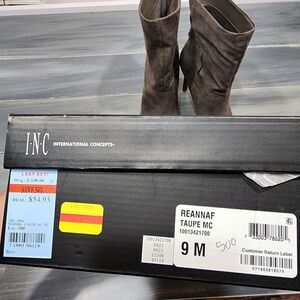 INC International Concepts Reanna Boots Stiletto Heel Pointed Toe Faux Suede 9 M Taupe