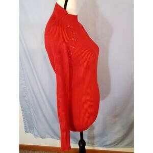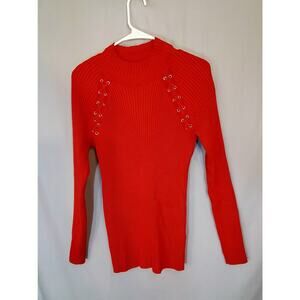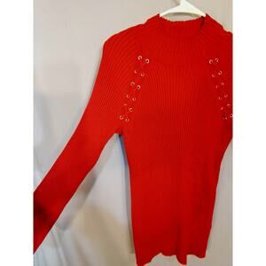 INC International Concepts Red sweater. Beautiful red knit sweater with grommet with cross lace and cowl neck.