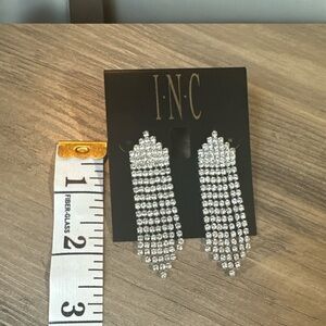 INC International Concepts Rhinestone Fringe Drop Earrings – Silver Statement