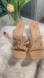 Stylish beige sandals with woven straps. Features sparkling accents. Perfect for any occasion.