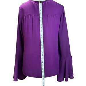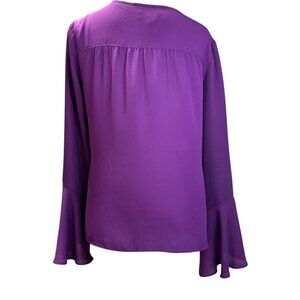 INC International Concepts Ruffle Front Long Sleeve Blouse Purple Size M