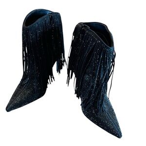 I.N.C. International Concepts Sahoj Western Fringe Rhinestone Booties NEW 8.5