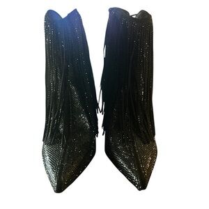 Stylish boots with fringe detail. Embellished with sparkling accents. Perfect for a night out.