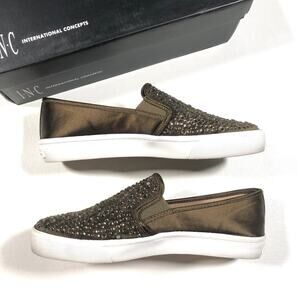 INC International Concepts Sammee Slip-On Sneakers Size 7.5M / 9W Olive Green