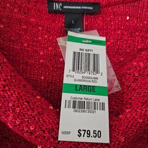 Glamourous Red sequin cowel neck sweater; 27" length (shoulder to bottom), 19" width (chest)