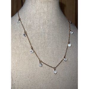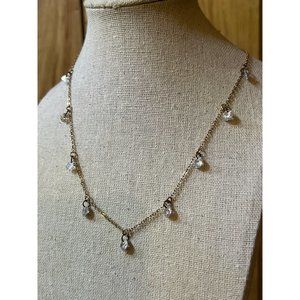 INC International Concepts Shaky Cubic Zirconia Necklace—18”. A simple and exquisite necklace by INC. wear with jeans or your favorite evening attire, a great idea for a wedding. It has 3 extender stations. Lobster Claw Clasp. Chain shows a little wear. Measurements: Length: 16”; Extender: 3”