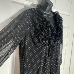 INC International Concepts Shirt Women XL Black Polka Dot Ruffle Sheer Button Up