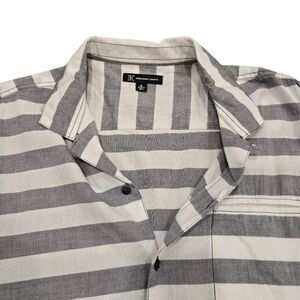 INC International Concepts Shirt Men XL Gray White Stripe Short Sleeve Button-Up