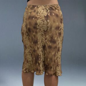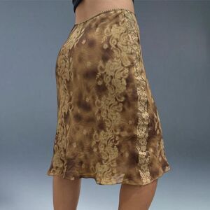 INC International Concepts Silk Skirt 8 Brown Lace Midi Boho Y2K Paisley Fairy