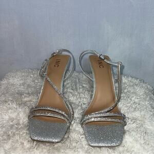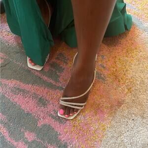 Square-toe slip-on slingback dress sandals with adjustable buckle closure
